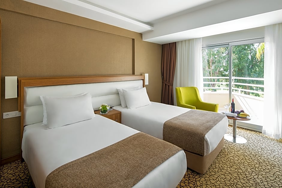 Standard Club Room is 269 square feet and includes either 2 single beds 80-130 width or a double bed 131-150 width plus balcony, satellite tv , hairdryer, and safe.
